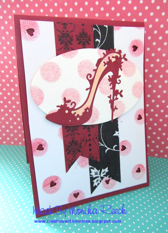 ReplyDeleteWhat a wonderful (and sexy!!!!) shoe, Monika - a shoe like that has to be red, hey!!! - unfortunately at my age I can NOT wear shoes like that any more!!! LOL!!!! But I can still LOVE your card, hey!!!! So lovely with all the fun dots and little hearts and the banners!!!! Really cute!!!!