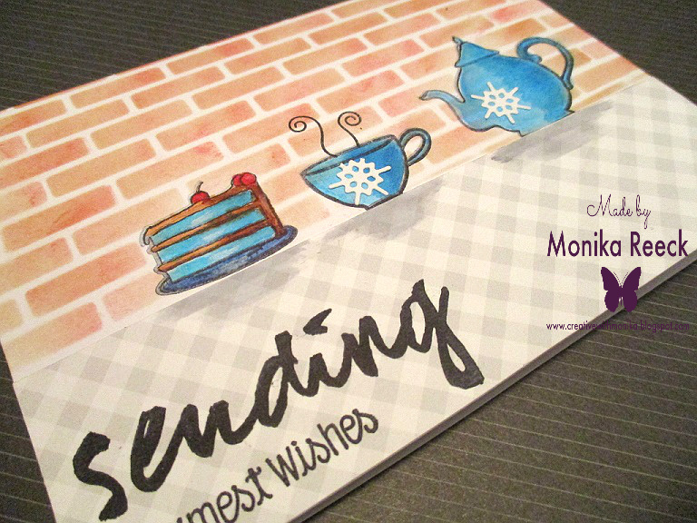 ReplyDeleteWhat a wonderful card Monika - love it - the stamped 'tablecloth' is a wonderful touch, with the brick stenciled wall it looks like a cafe