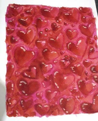 2. I watercolored all the heart one by one with Peerless Transparent Watercolor, with some shade of red.